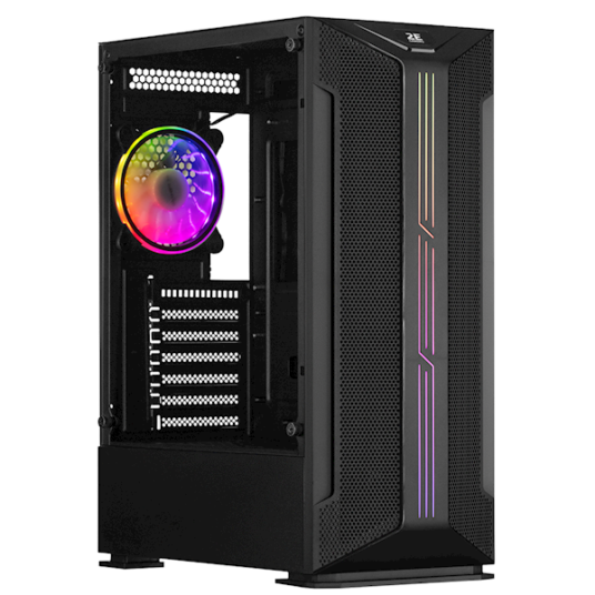 კომპიუტერის ქეისი 2E GAMING Computer case HUNTER (GH1) MidT,2xUSB2.0,1xUSB3.0,1x120mm ARGB, TG(side panel), without PSU, black