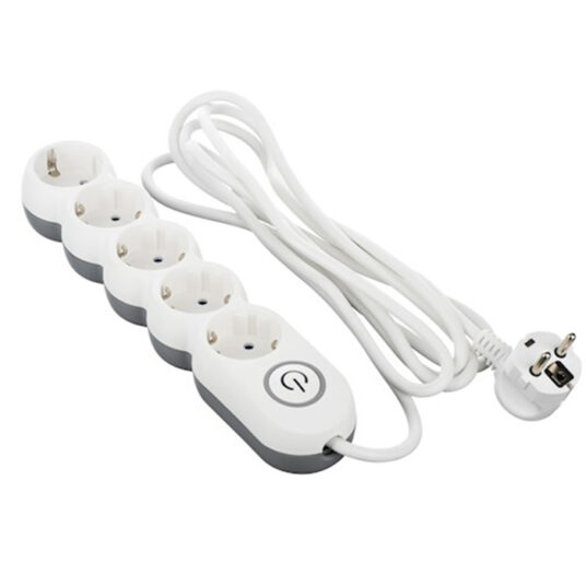 with children protection.H05VV-F 3G*1.0mm, 3m, white, suitable for vertical mounting, დატვირთვის დენი: 16, კაბელის ტიპი: 3×1 მმ2, სპილენძი (H05VV-F), სოკეტები: 5 ც, სოკეტის ტიპი: Euro, Schuko