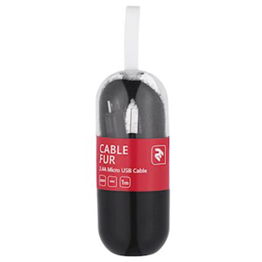 კაბელი 2E Cable Fur USB 2.4 to Micro USB Cable, Black, 1m