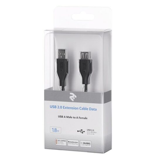 კაბელი 2E Cable USB 2.0 (AM/AF), 1.8m, black
