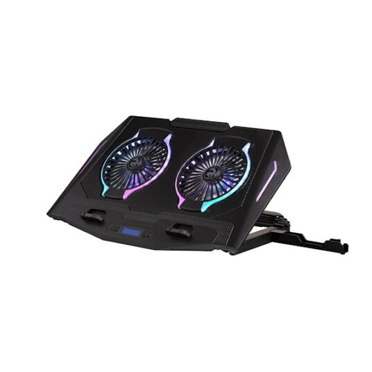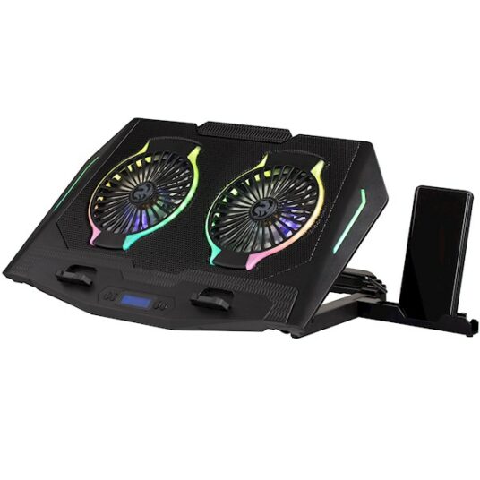 Additionally: Rubberized legs, rubberized holders for fixing a laptop, a holder for a smartphone, Backlight: LED / RGB, Fan speed adjustment: Yes, 7 levels, RGB backlight adjustment: Yes, Stand height adjustment: Yes, 5 levels