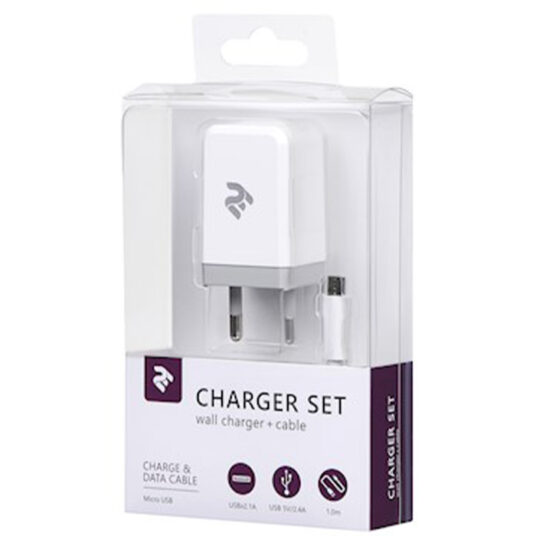 დამტენი ადაპტერი 2E Wall Charger Set USBx2.1A + Cable MicroUSB, 2.4A